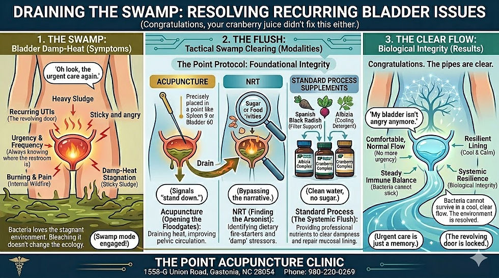 If it were that simple, you wouldn't be reading this while clutching a heating pad. At The Point Acupuncture Clinic, we don't just see a localized infection; we see Damp-Heat in the Lower Jiao.